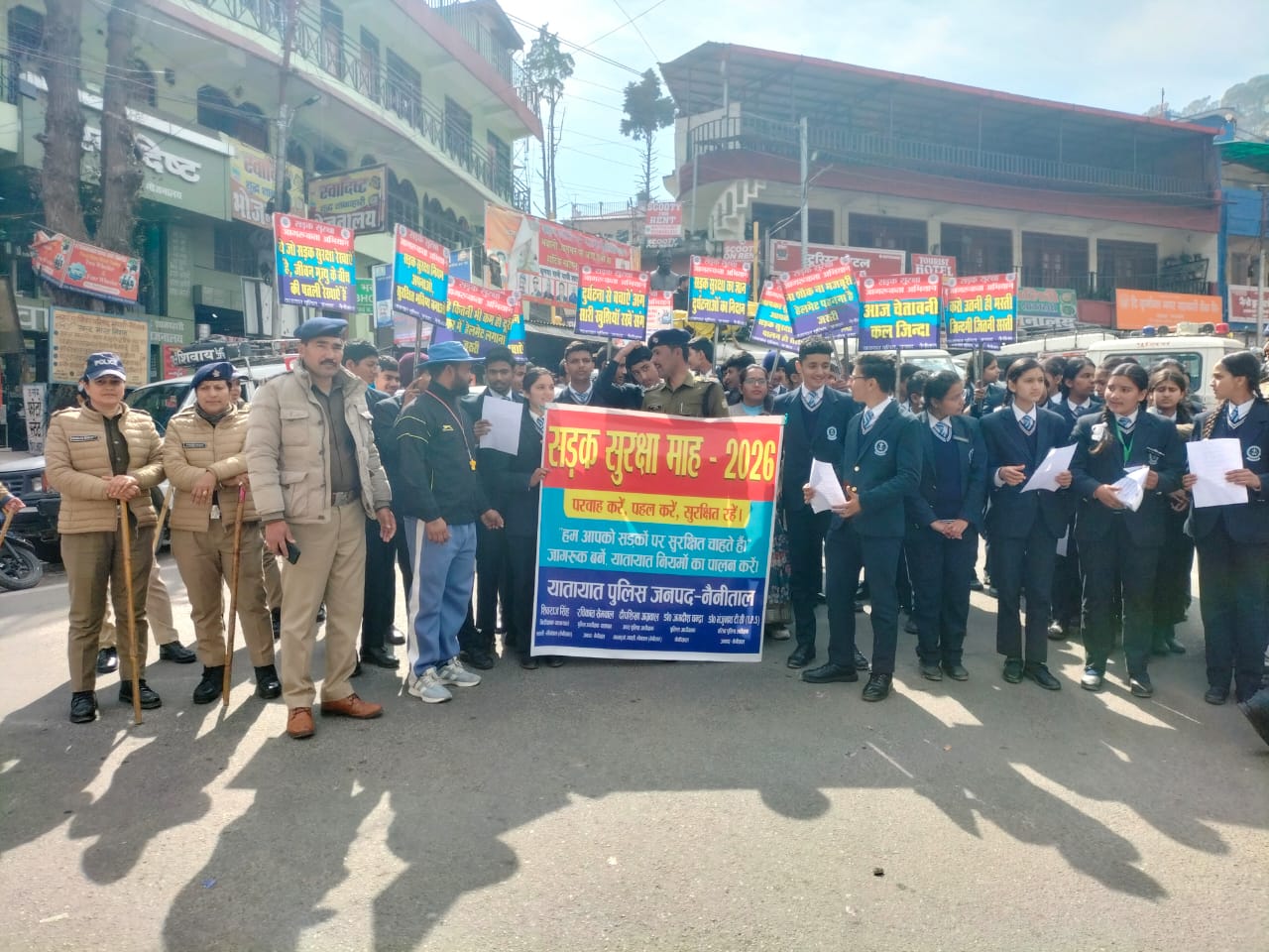 कोतवाली भवाली और यातायात पुलिस की टीम ने डेविटो हायर सेकेंड्री स्कूल भवाली के छात्र/छात्राओं के साथ मिलकर निकाली यातायात जागरूकता रैली छात्र, छात्राओं, स्थानीय पढ़ाया टैक्सी/बस चालकों व आमजनमानस को दी यातायात नियमों की जानकारी हल्द्वानी/नैनीताल|13,फरबरी 2026 सड़क परिवहन एवं राजमार्ग मंत्रालय भारत सरकार के निर्देशानुसार यातायात दुर्घटनाओं में