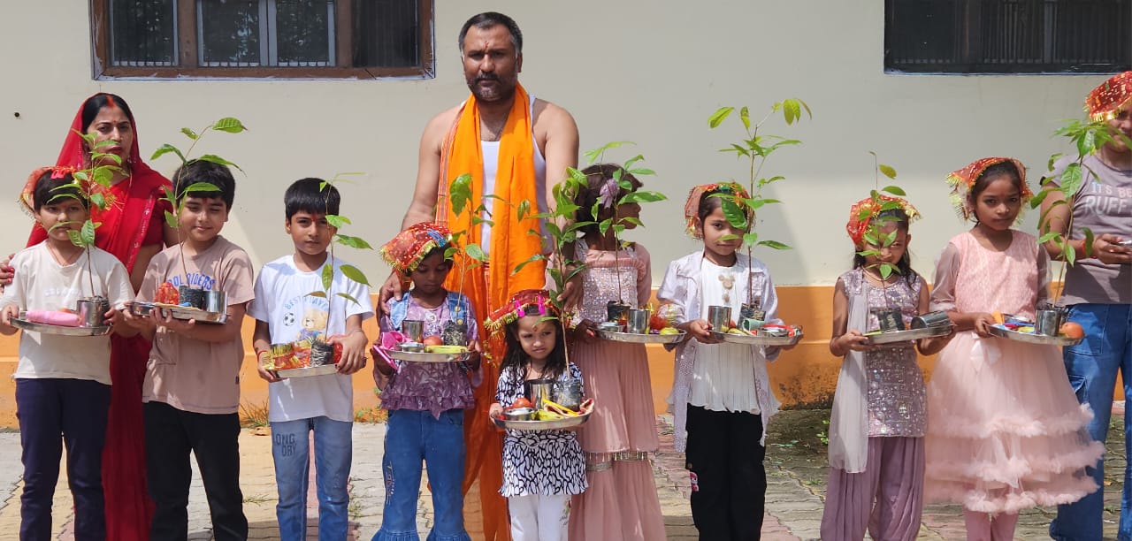 नौ कन्या पूजन कर सभी को उपहार में दिया पेड़ संदीप मिश्रा