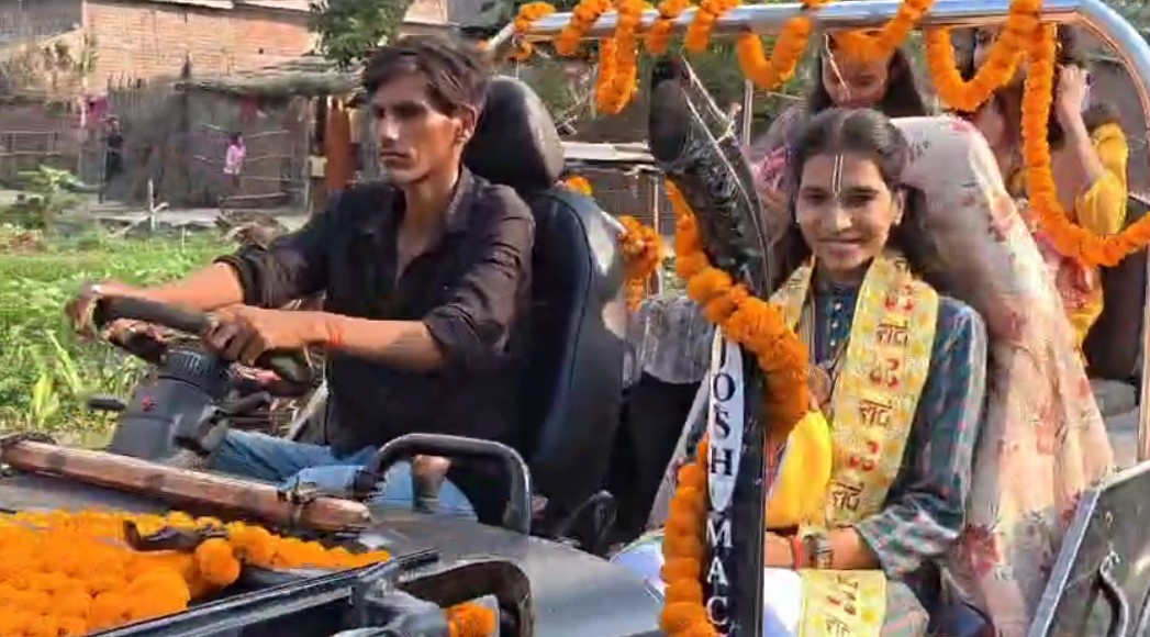 जहांगीरपुर में दुर्गापूजा को लेकर बेल नौती के साथ कथा वाचिका गांव में घूमी